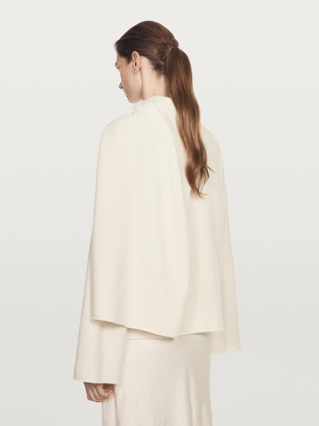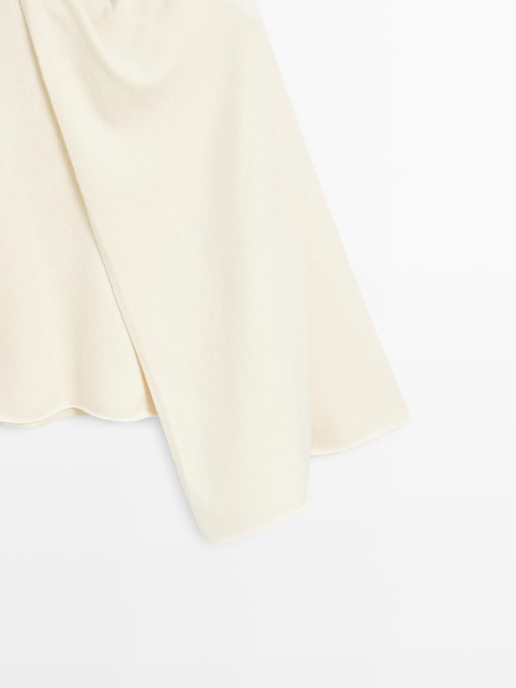 Sweater made of 100% wool . Wraparound collar. Long sleeves. Scarf detail at the neck .