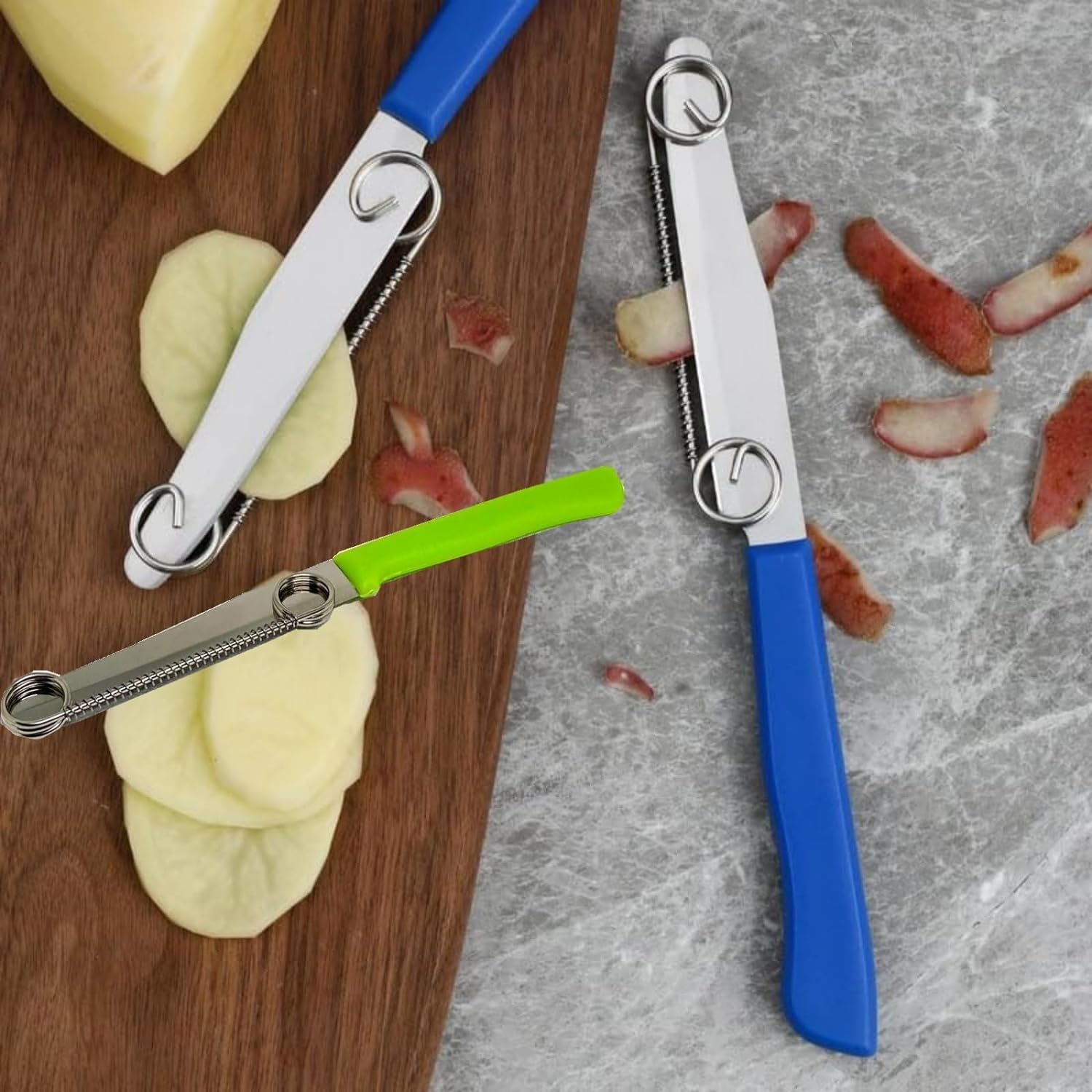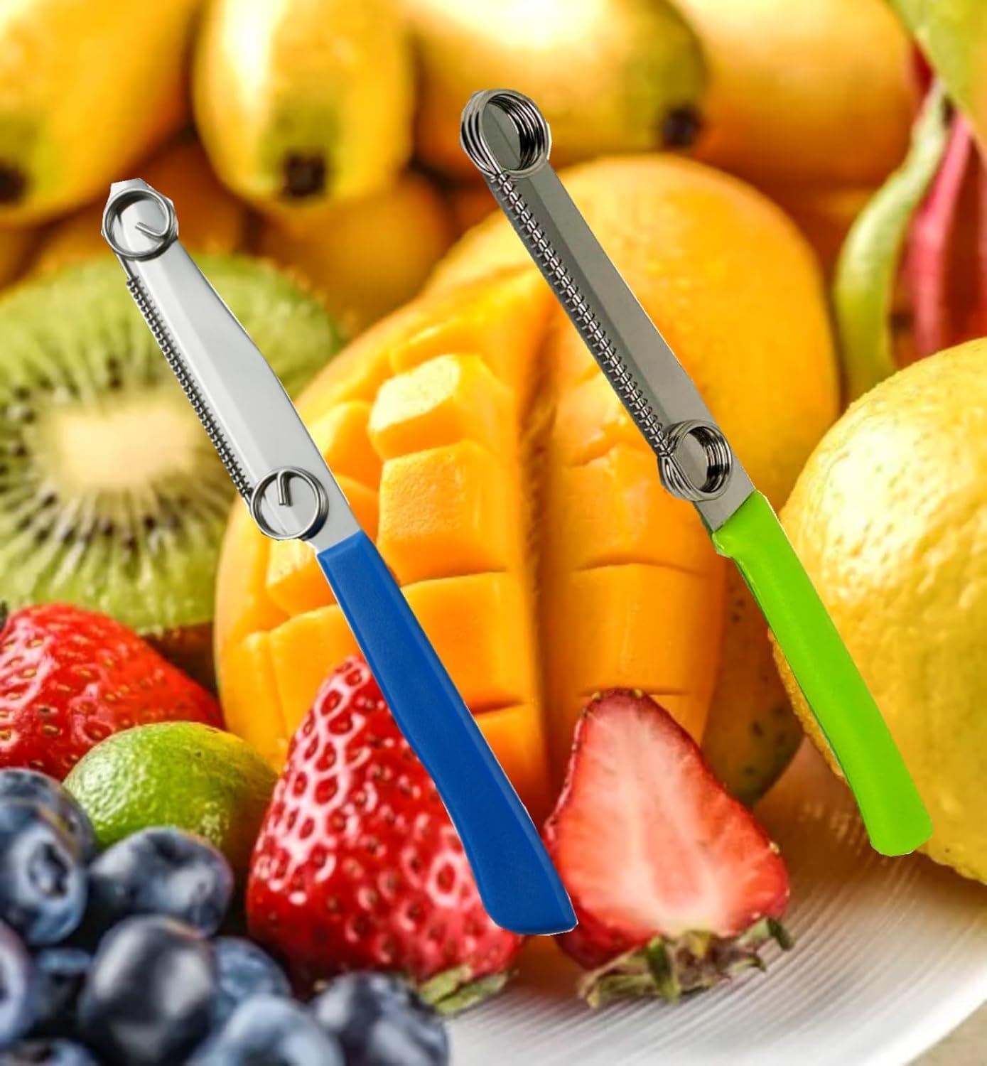 🌟【Multi-function three-purpose fruit knife】This three-purpose fruit knife is a multi-functional kitchen tool with functions far beyond ordinary knives. It is equipped with an adjustable spring, which makes it easy to accurately peel or cut fruits and vegetables in two different widths, and is a must-have tool for vegetable lovers.