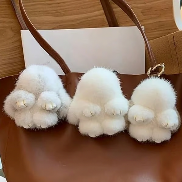 - High-Quality Faux Fur:Β The keychain is crafted from premium faux fur, ensuring durability and softness that mimics real rabbit fur without harming animals.