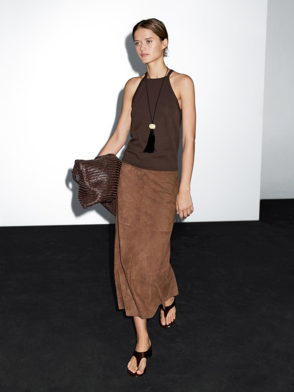 Halter neck top . Sleeveless. Made of cotton blend fabric.