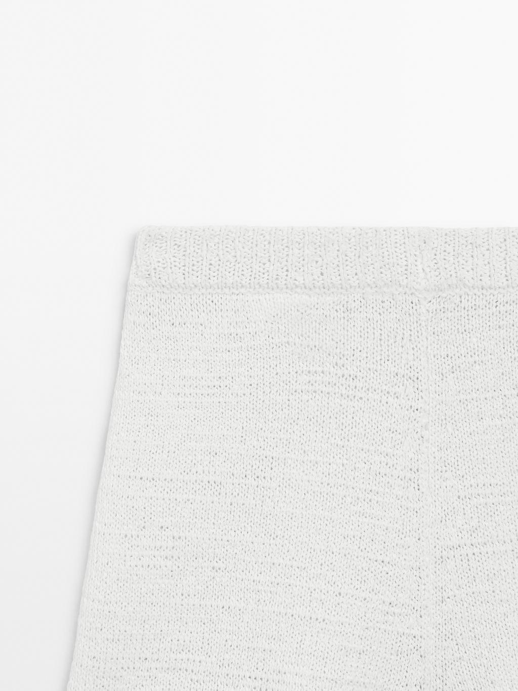 Knitted shorts made of cotton blend fabric. Elasticated waistband detail.