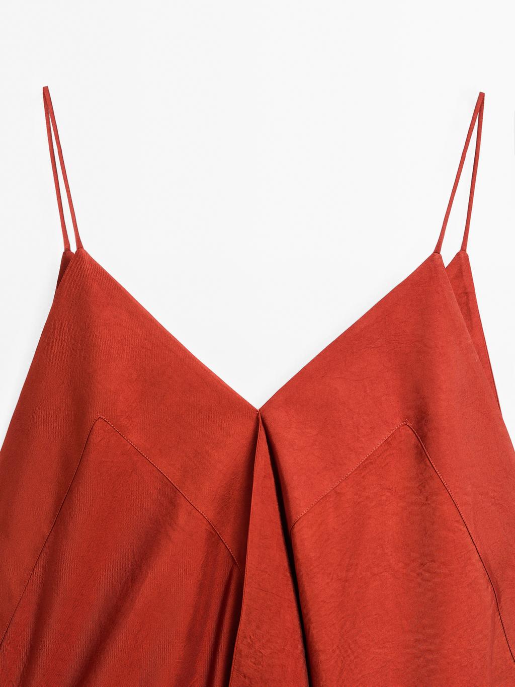 Flowing V-neck midi dress. Strappy. Side vents at the hem. Textured.