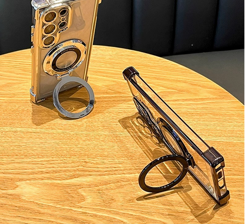 【Invisible Stand Magnetic Protective Case】This is a new series that provides magnetic ring and stand functions for mobile phones. When open, the built-in aluminum magnetic ring can stand stably in portrait or landscape mode.