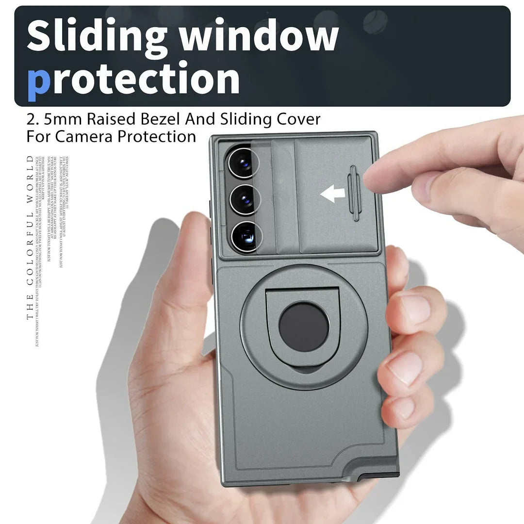 New Hidden Sliding Window Magnetic Ring Holder Mobile Phone Case