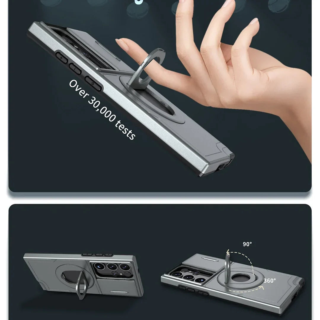 【Latest Upgraded Design】The ring bracket can rotate 360 degrees,Built-in super strong magnets are compatible with wireless charging stand,mag-safe wireless Car Charger,and all mag-safe accessories and other Qi Wireless chargers.