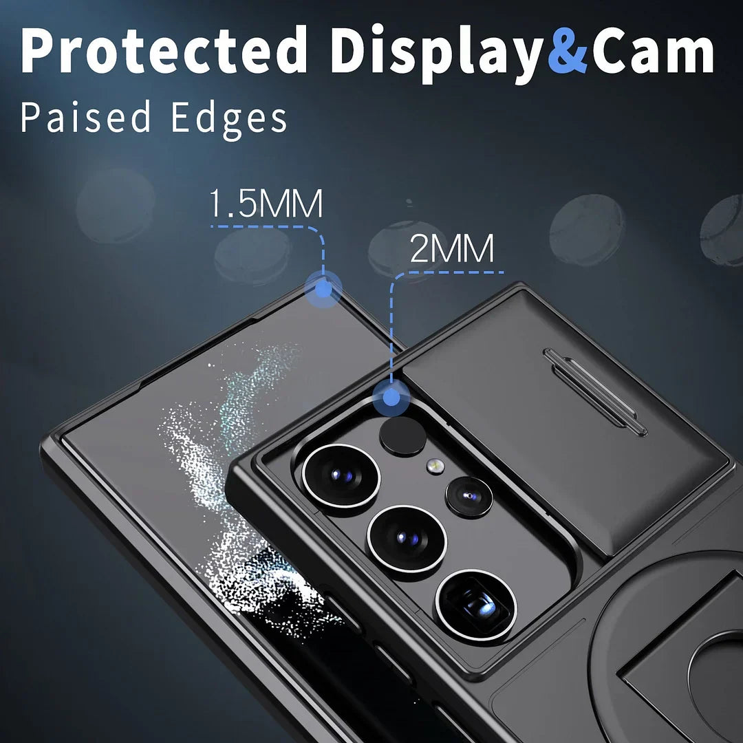 【Camera Lens Cover】 With this heavy-duty case, we've also integrated an easy-to-open slide cover for the camera lens, so your high-definition camera is protected at all times until you're ready to take a shot. With our S24 Ultra Case, you can keep your lens clean and free from scratches.
