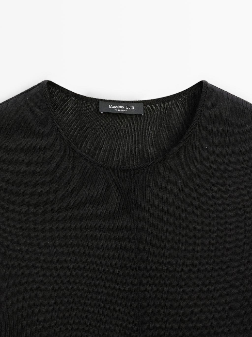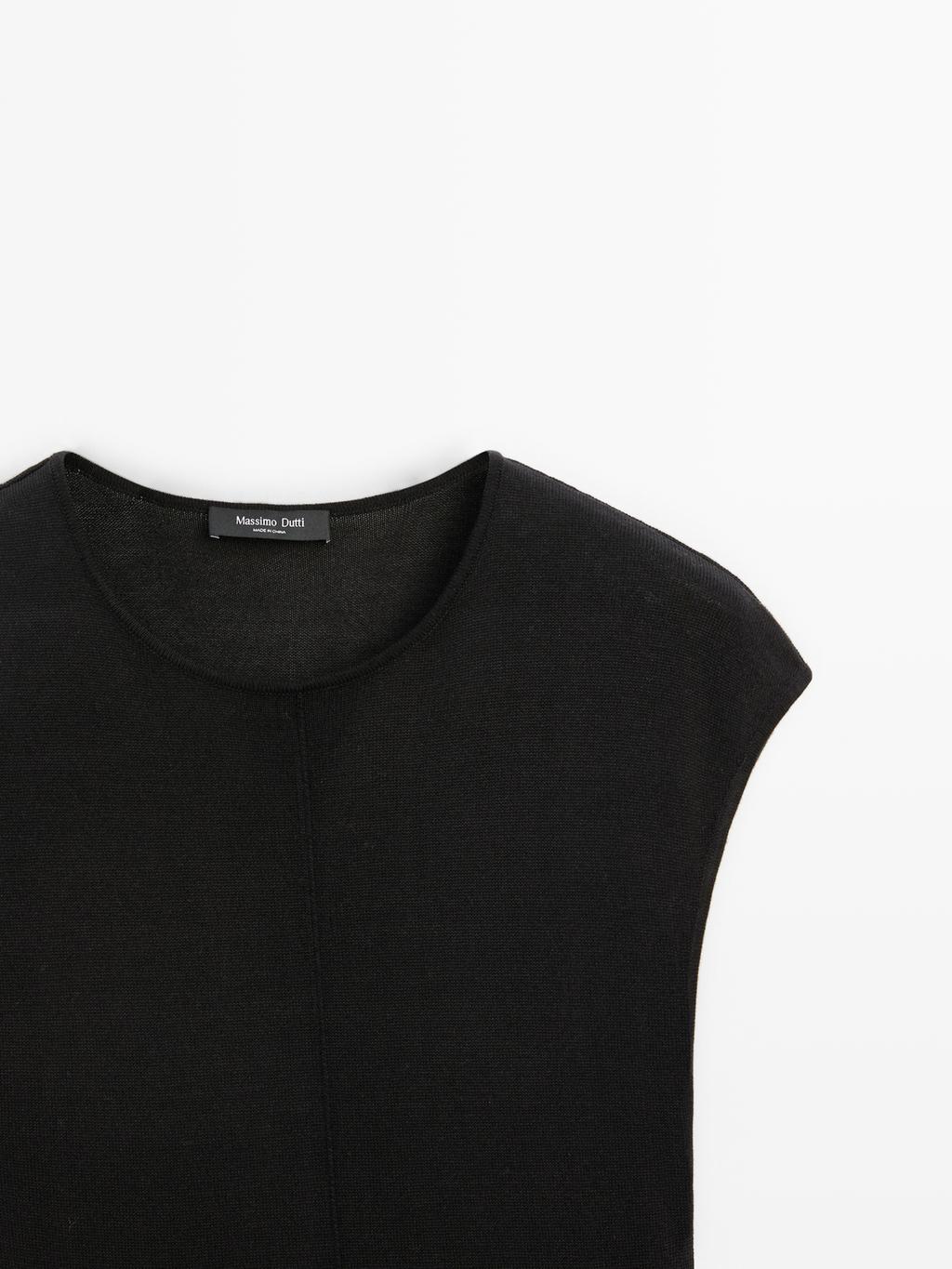 Combined long dress with a knit top part and gathered skirt. Crew neck. Sleeveless. Half lined.
