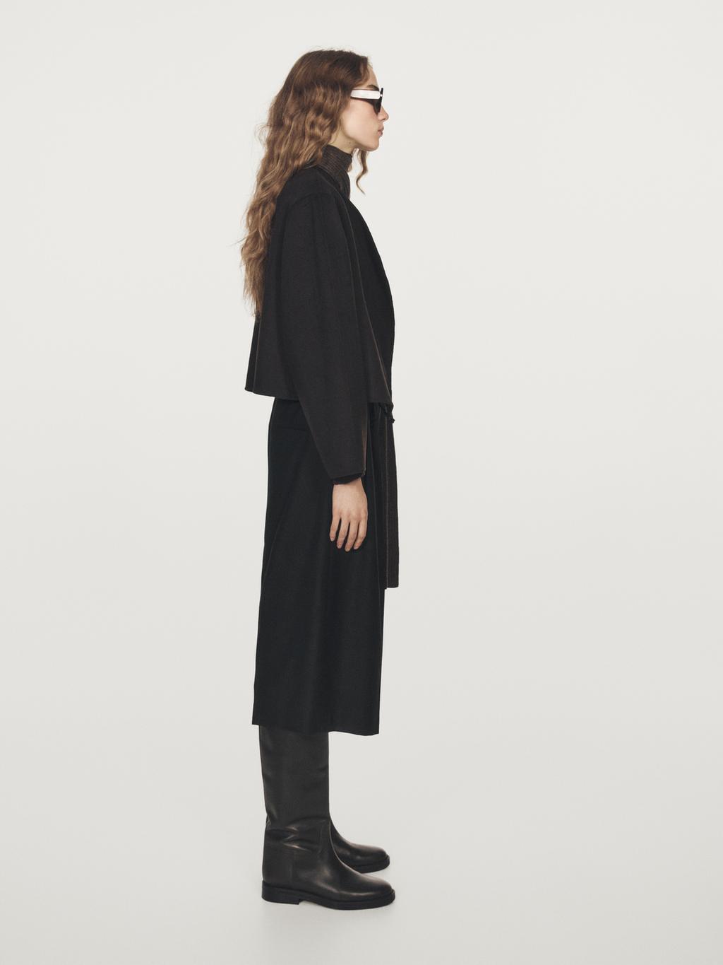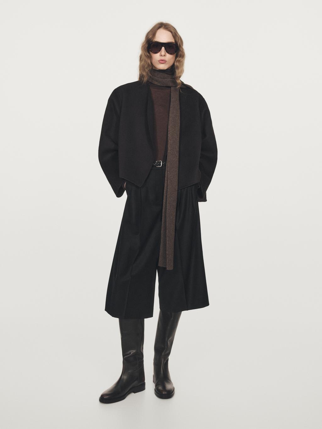 Long Bermuda shorts made from wool fabric. Zip and hook-and-eye fastening with inside button . Two side pockets. One welt pocket at the back. Darted detail on the front. Flannel.