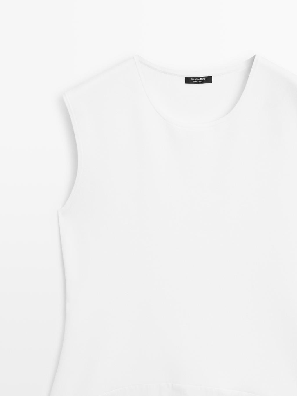 Long dress made of cotton knit fabric. Round neck. Sleeveless.
