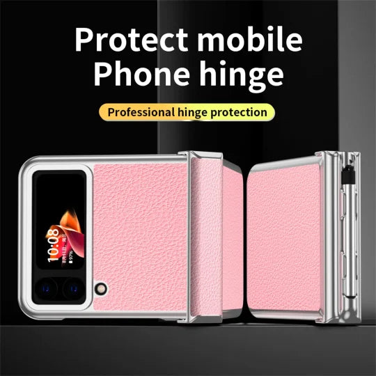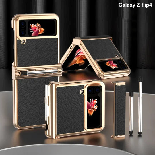 For Samsung Z Flip 3/4/5/6 Electroplating Pure Leather Hinge Protective Case
