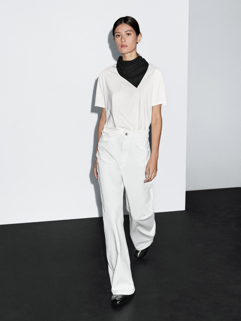 T-shirt made of 100% cotton. Crew neck. Short sleeves. Lightweight garment. Wide and relaxed silhouette, not tailored.