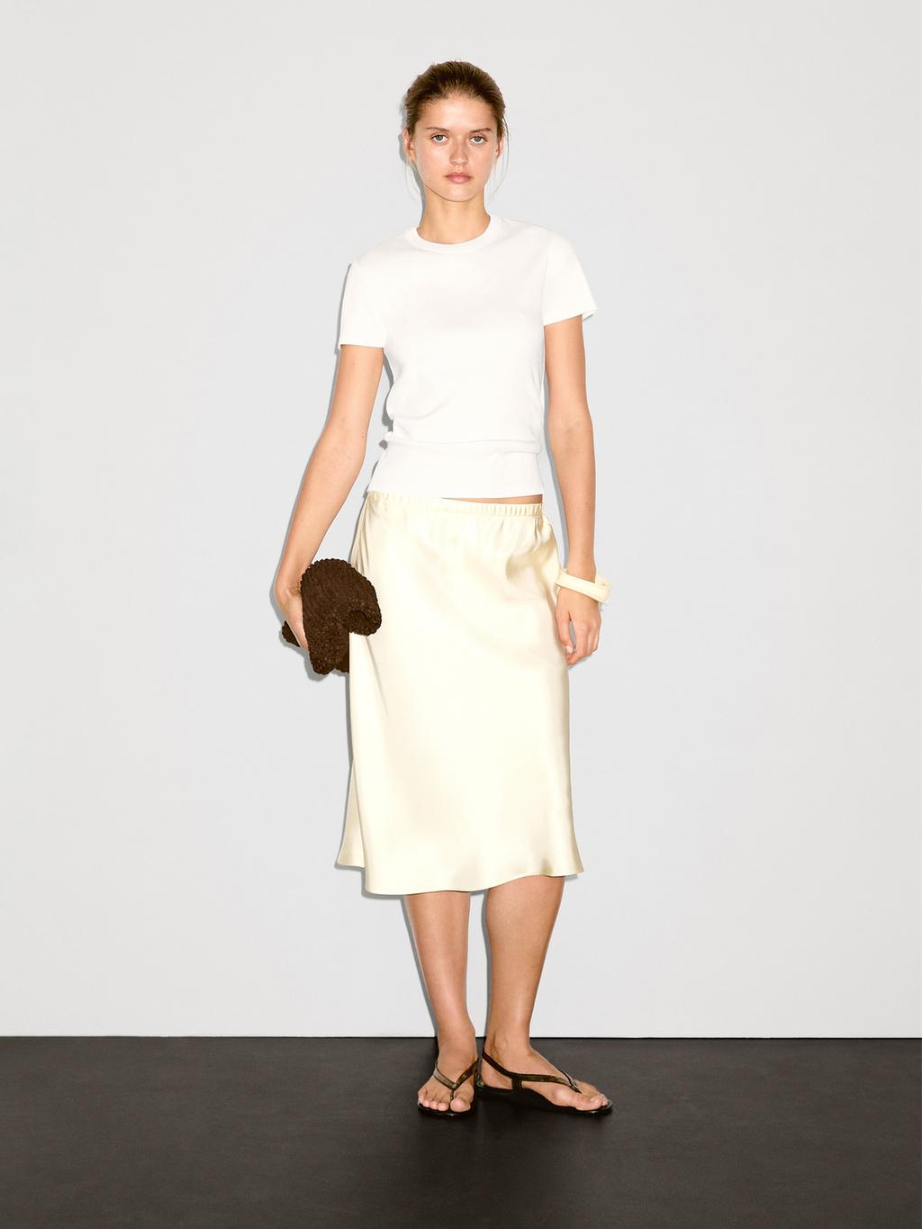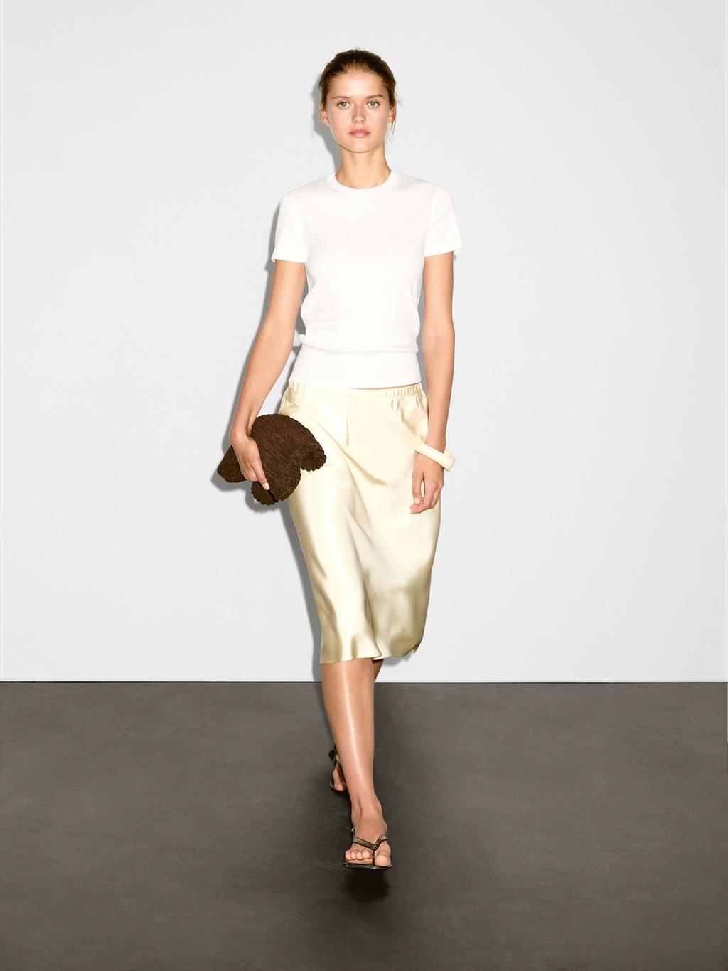 Cotton blend T-shirt. Slightly fitted silhouette, providing a more defined and slim appearance. Crew neck. Short sleeves. Ribbed trims . Made from a slight stretch fabric.