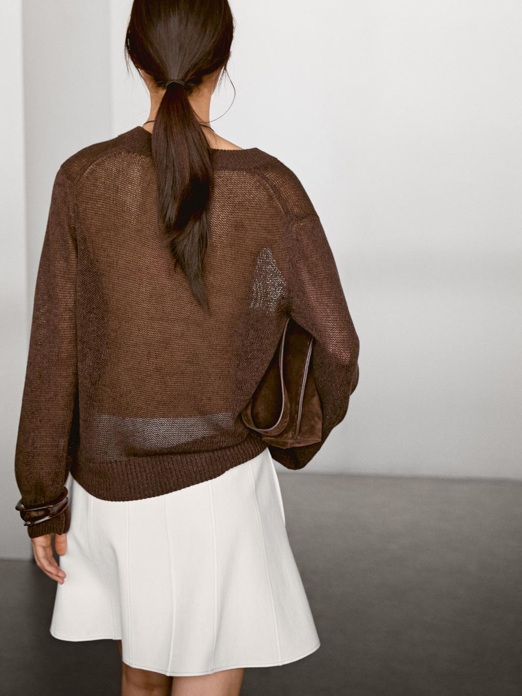 Short denim skirt made of 100% cotton fabric with stitched detailing. Side zip fastening. Two side pockets.
