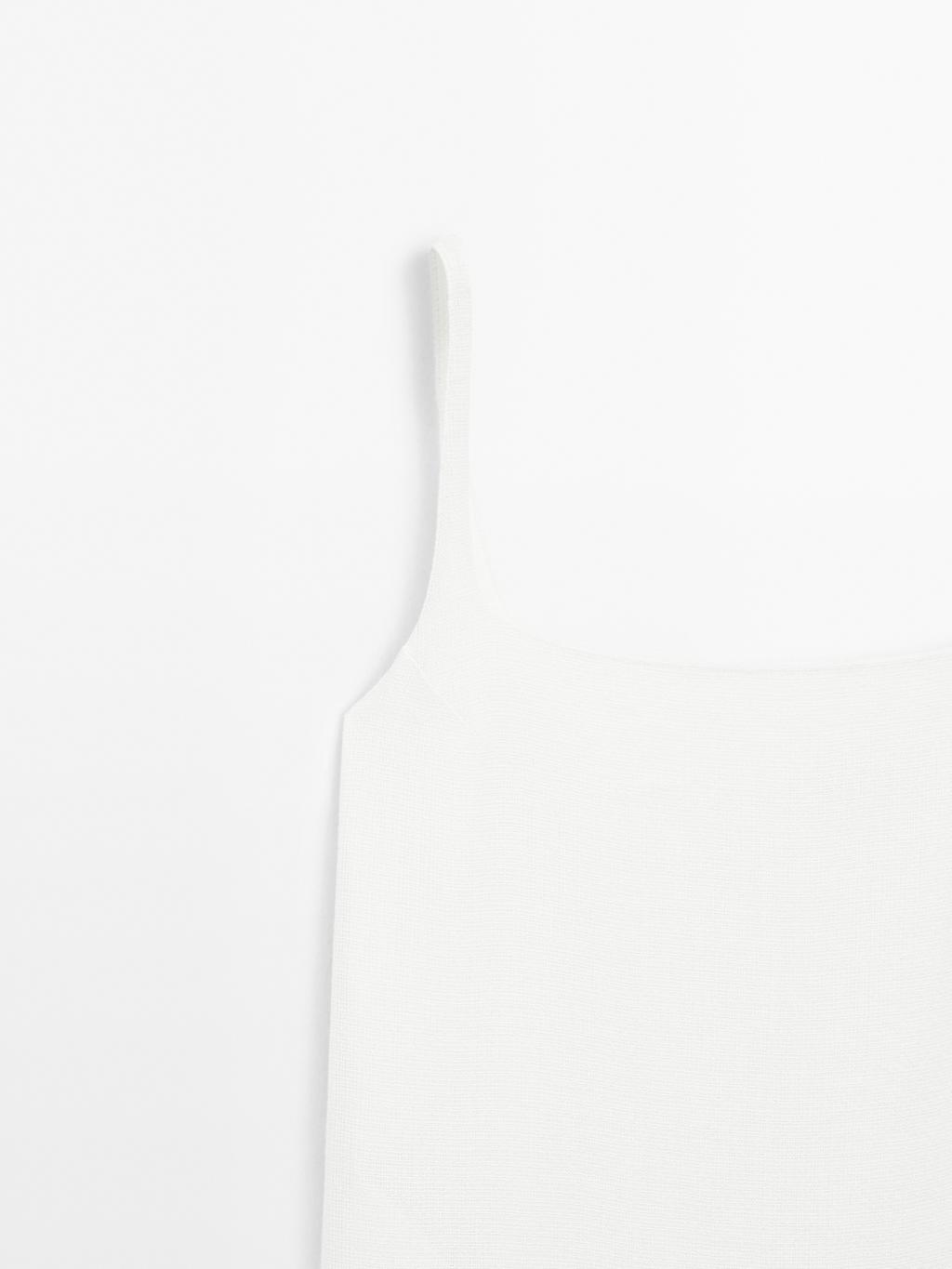 Round neck. Sleeveless. Zip fastening at the back. Two side pockets. Lined.