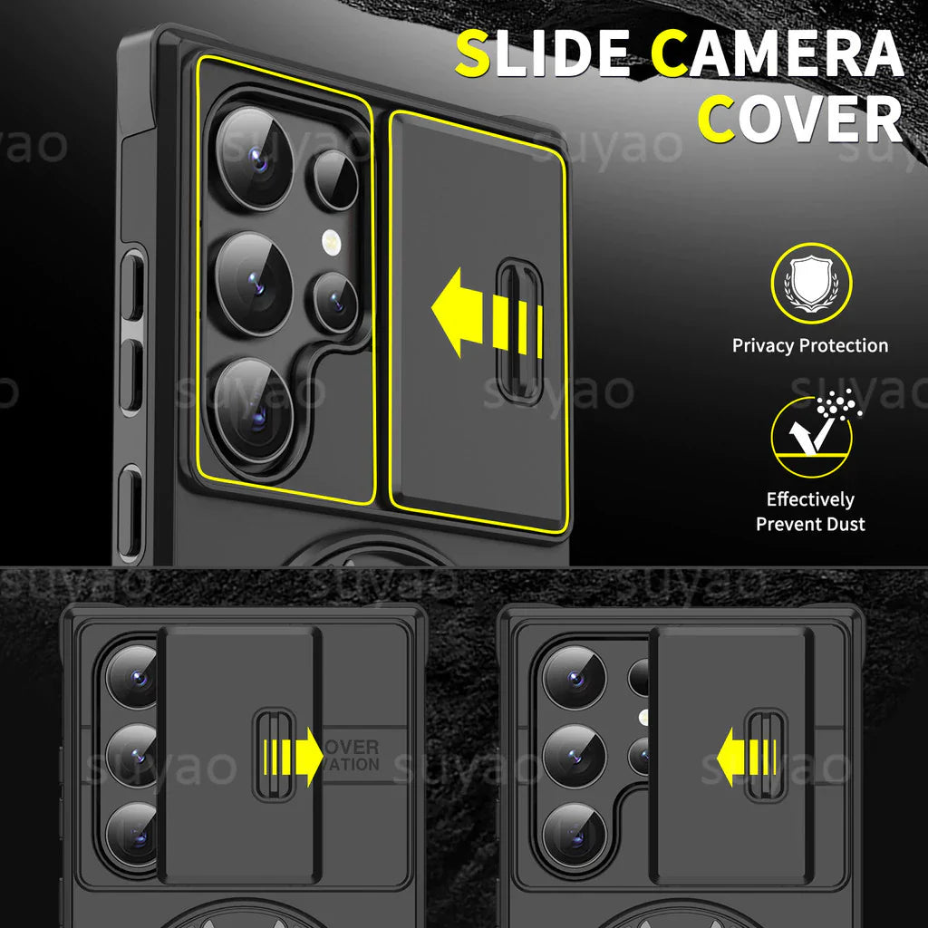 Camera Lens Cover: For this heavy-duty case, we also integrated an easy-to-open slide cover for the camera lens, so your HD camera is always protected until you are ready to shoot.