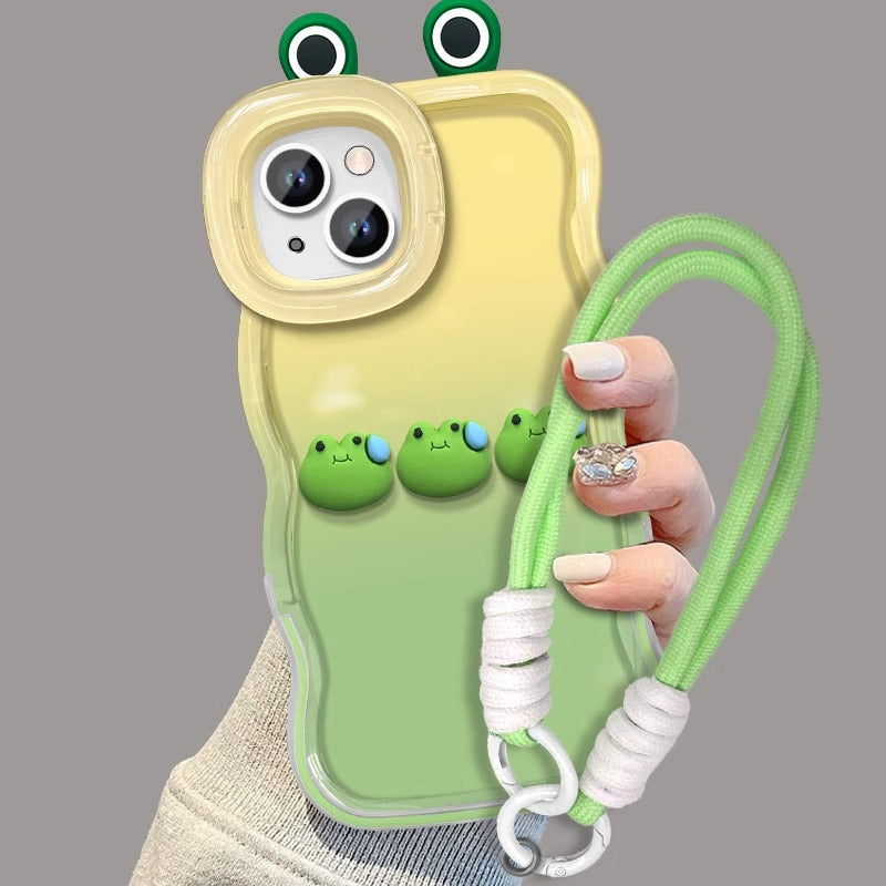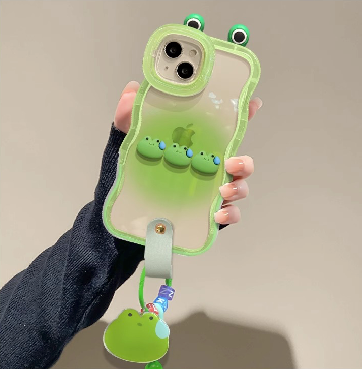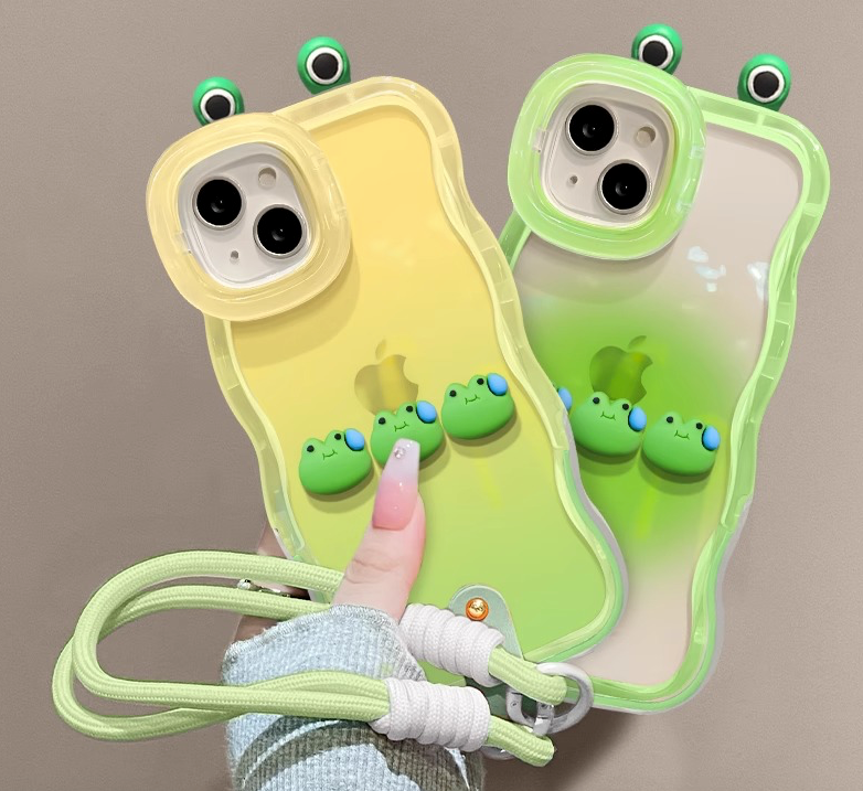 Suitable for iPhone 14/15/16 Sweating Frog Figure Double Stand Phone Case