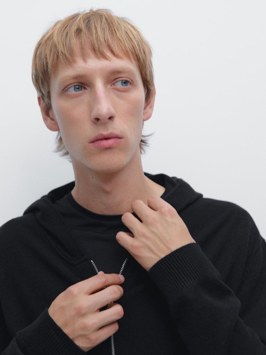 Cardigan made of knit fabric with wool . It has a two-way zip fastening. Ribbed trims .